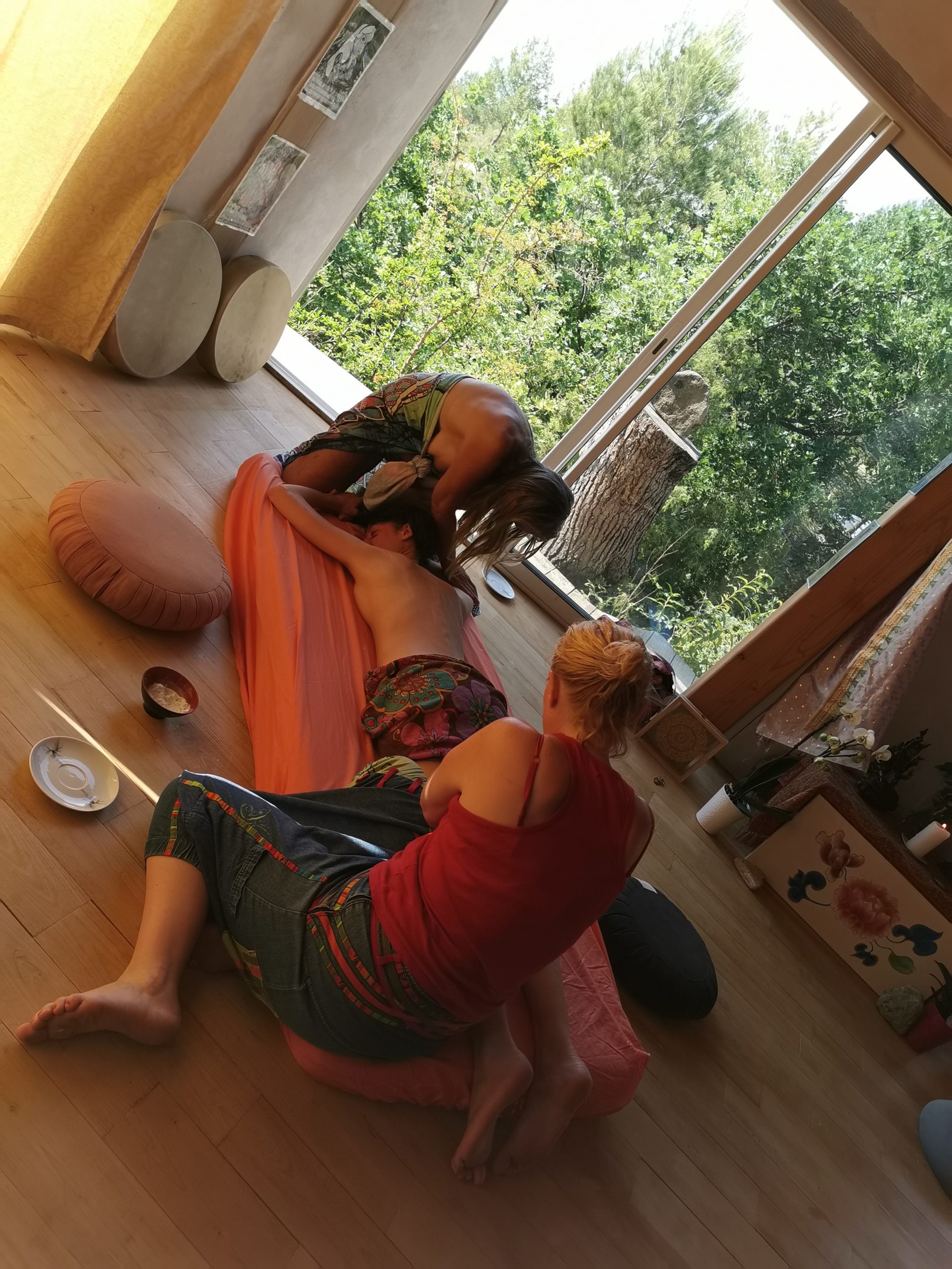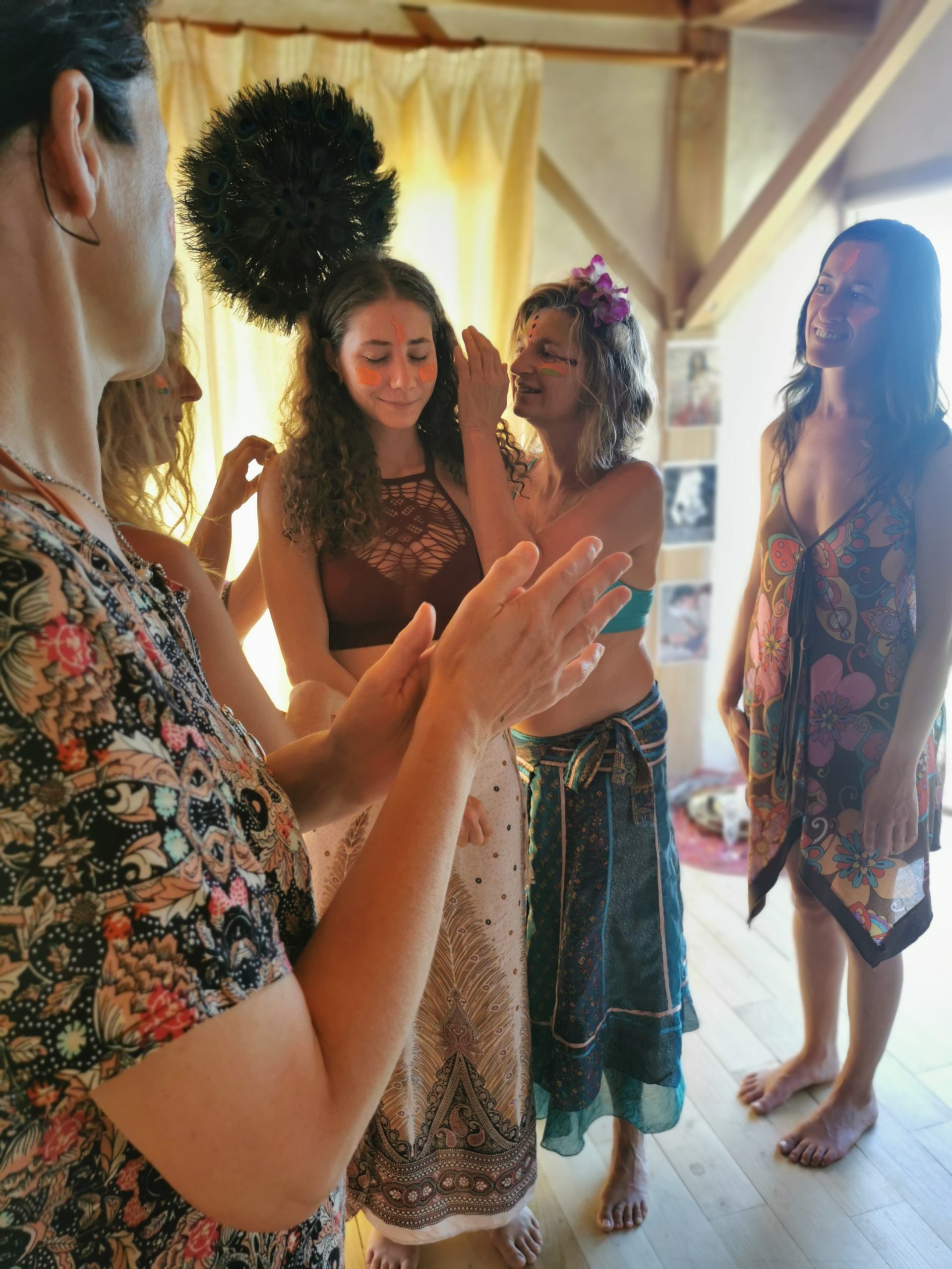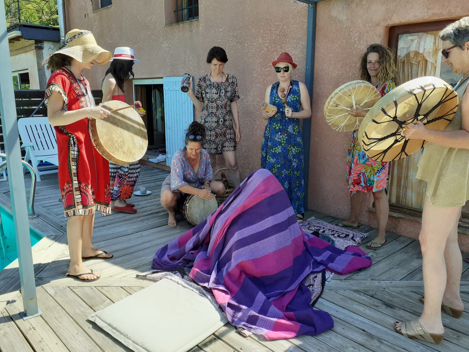 vous accueillent pour des rencontres femmes au Soleil bleu, un moment de sororité pour se reconnecter à son essence féminine, à sa force créatrice. Se donner du temps, de l'attention, faire bouger son corps, prendre du recul, danser, chanter, créer... Au programme, chants, danses, méditations, éveil corporel et spirituel, rituels, élans créatifs, au son des tambours, des voyages sonores aux bols Tibétains et gongs. Choisir cet espace entre soeurs, cocoon, 2 jours à sentir s'épanouir à l'intérieur une véritable connexion à Soi, une force sereine et joyeuse...