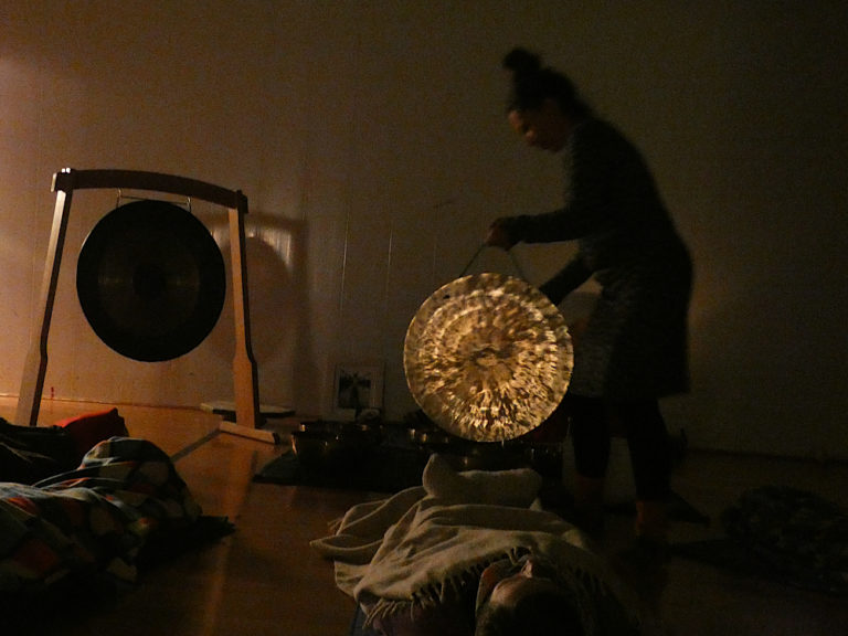 Lors d'une séance de groupe de voyage sonore vous êtes allongé sur un tapis de sol et couvert de votre plaid. Il s'en suit un véritable bain sonore. Les intentions sont portées globalement vers le groupe mais aussi vers chaque individu... le corps se détend au point que certains symptômes disparaissent parfois après la séance.. ( insomnies, mal de dos, contractions..) Il est important de réserver sa place à l'avance car certains lieux ont des places limitées et aussi parce que j'attends que tout le monde soit là pour commencer une séance afin que nous ne soyons pas dérangés une fois que le voyage a commencé.