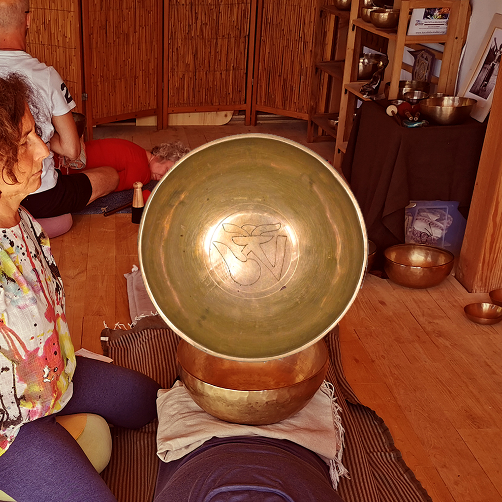 Lors de voyages sophrosoniques aux bols tibétains, lorsque la voix ou un instrument intuitif résonnent, la vibration traverse le corps jusqu’à l’infiniment petit. Nos cellules sont véritablement massées. Résultat : nous entrons rapidement en état sophronique, un état entre la veille et le sommeil. Le mental a alors beaucoup moins d’accroche et peut même lâcher prise complètement..
